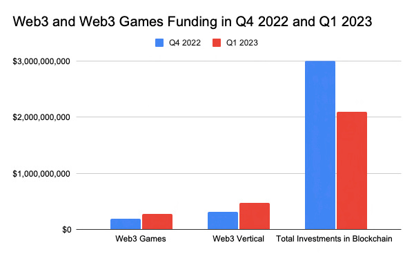 At this point, we do not have access to the quarter analytics from the industry leaders simply because the quarter is not over. But, most probably, we will see a further decline in total VC funding in the blockchain industry in Q1’2023. At the same time, the share of investments in Web3 startups and Web3 games will probably increase compared to the closing quarter of 2022.